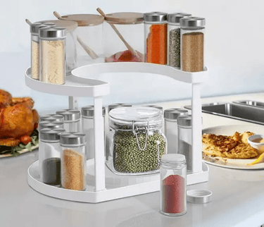 Maak koken eenvoudiger en efficiënter met het SpinRack Roterende Kruidenrek. Dit innovatieve rek biedt een snelle en gemakkelijke manier om je kruiden georganiseerd en binnen handbereik te houden. Dankzij het roterende ontwerp hoef je nooit meer te zoeken naar het juiste kruidenflesje, waardoor je kostbare tijd bespaart en je keuken er altijd opgeruimd uitziet.